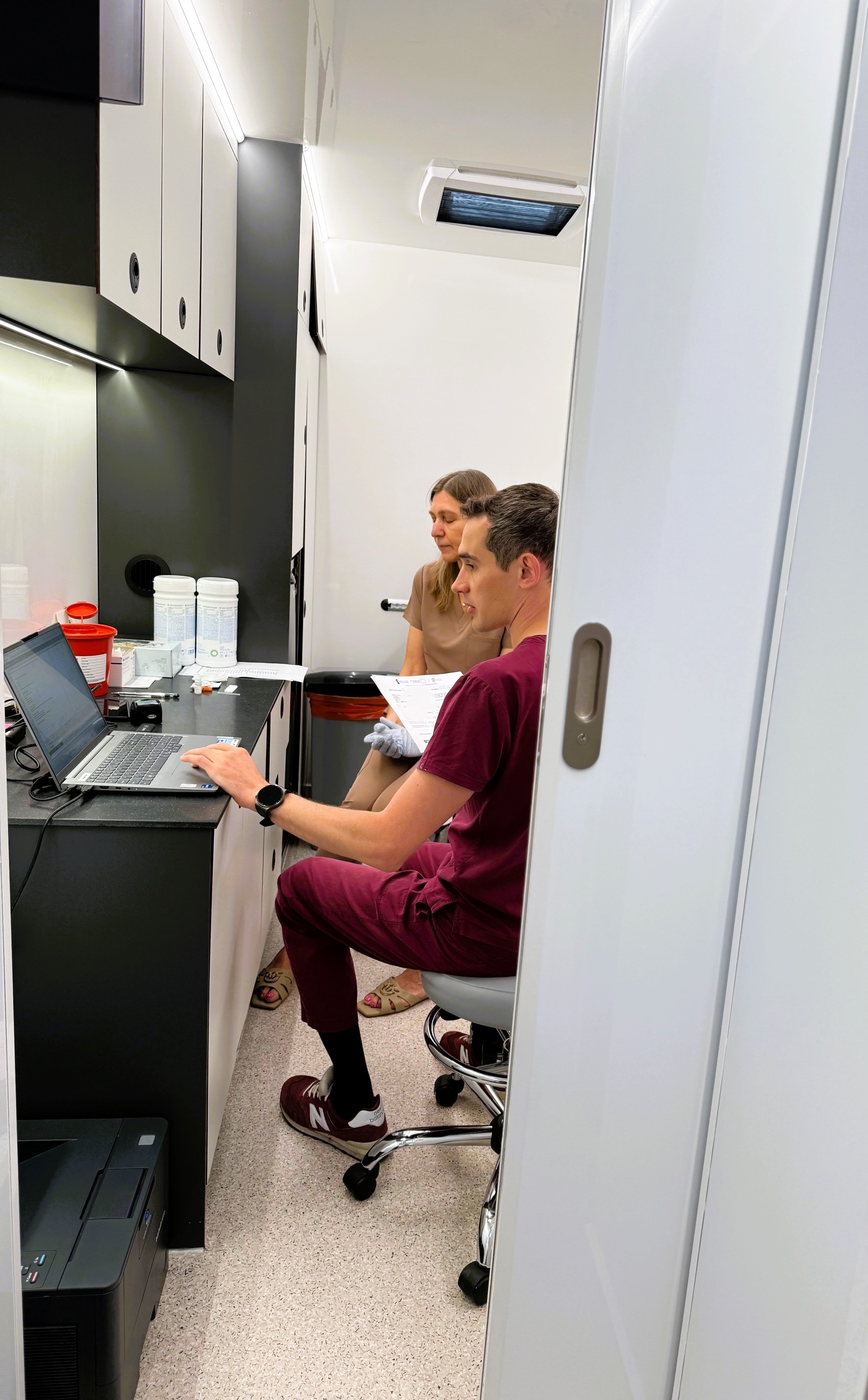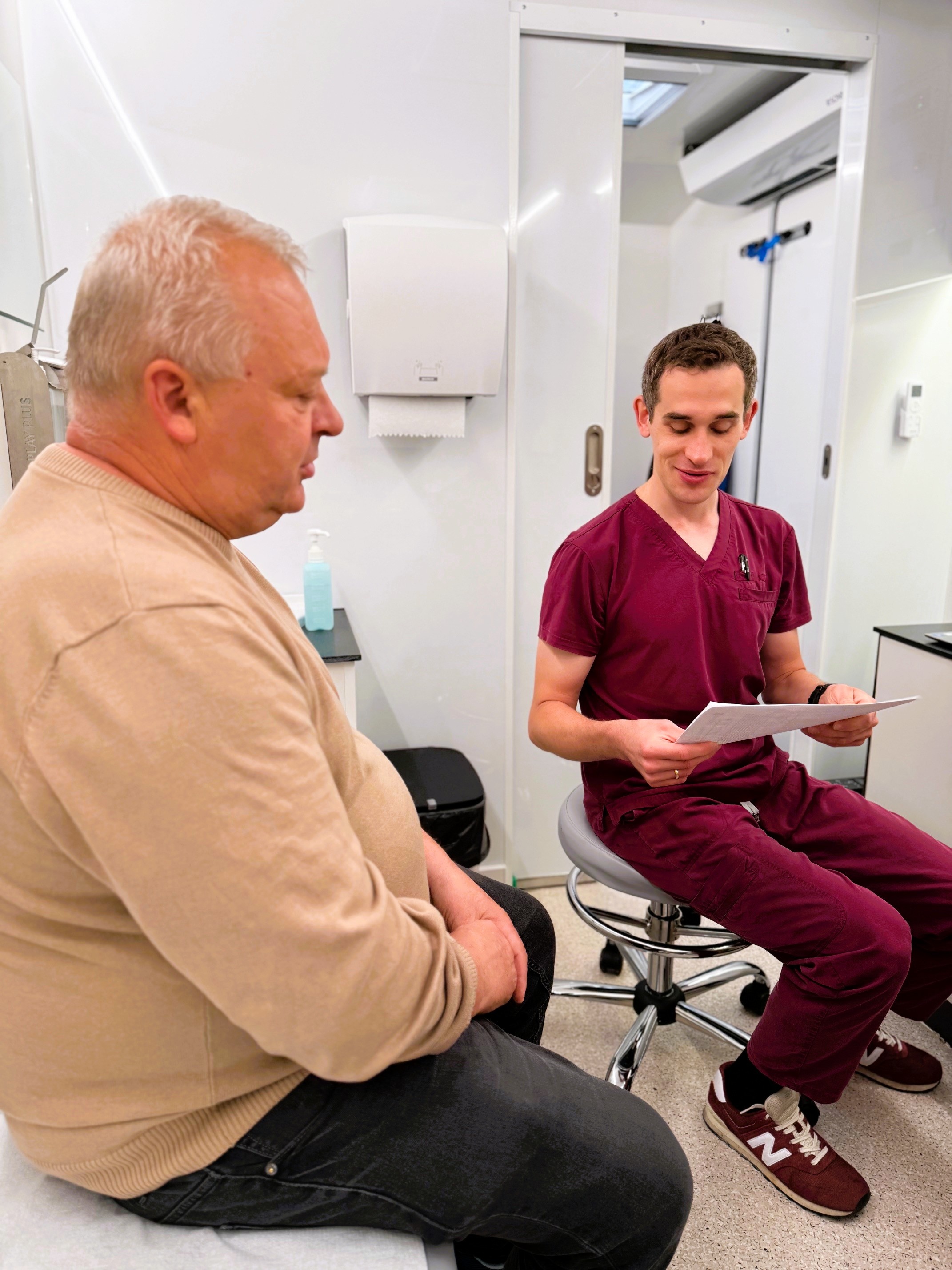 Badania w mobilnym gabinecie wykonywał urolog lek. Piotr Leśniak, któremu towarzyszyła pielęgniarka Viola Szczesniak.