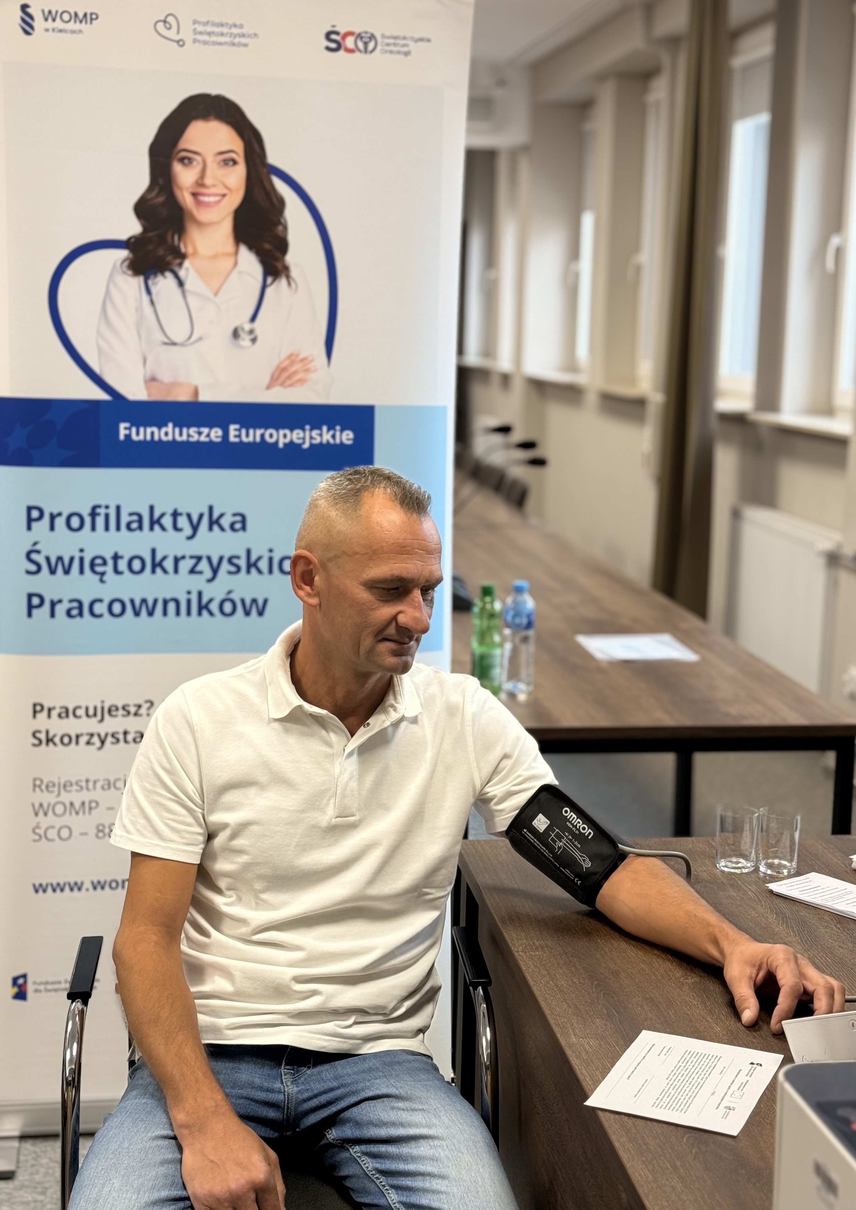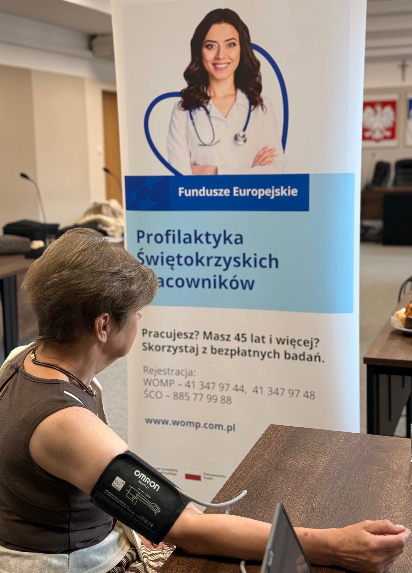 Projekt "Profilaktyka Świętokrzyskich Pracowników" jest realizowany przez Wojewódzki Ośrodek Medycyny Pracy w Kielcach, we współpracy ze Świętokrzyskim Centrum Onkologii w ramach programu regionalnego Fundusze Europejskie dla Świętokrzyskiego 2021-2027.